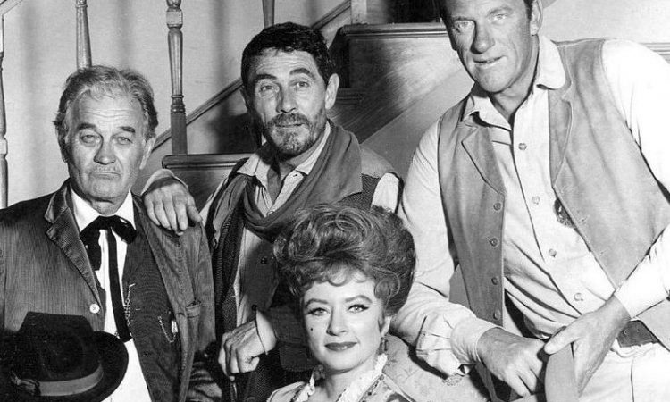 Titelbild | „Main cast photo from the television program Gunsmoke in 1967. Standing, from right: James Arness as Marshall Matt Dillon, Ken Curtis as Festus Hagen, and Milburn Stone as „Doc“ Adams. Seated: Amanda Blake as „Miss Kitty“ Russell.“ © Wikipedia, CBS Television